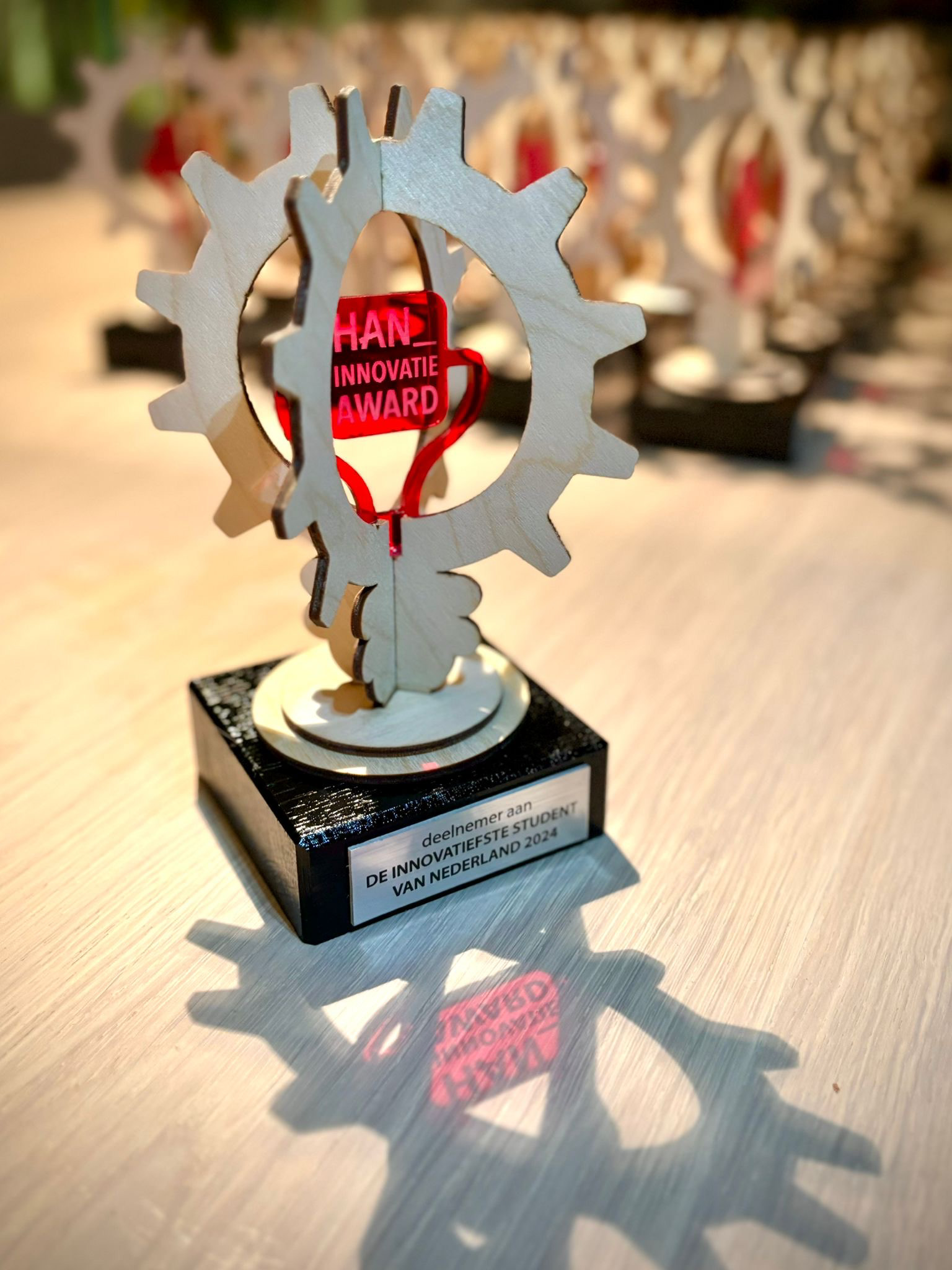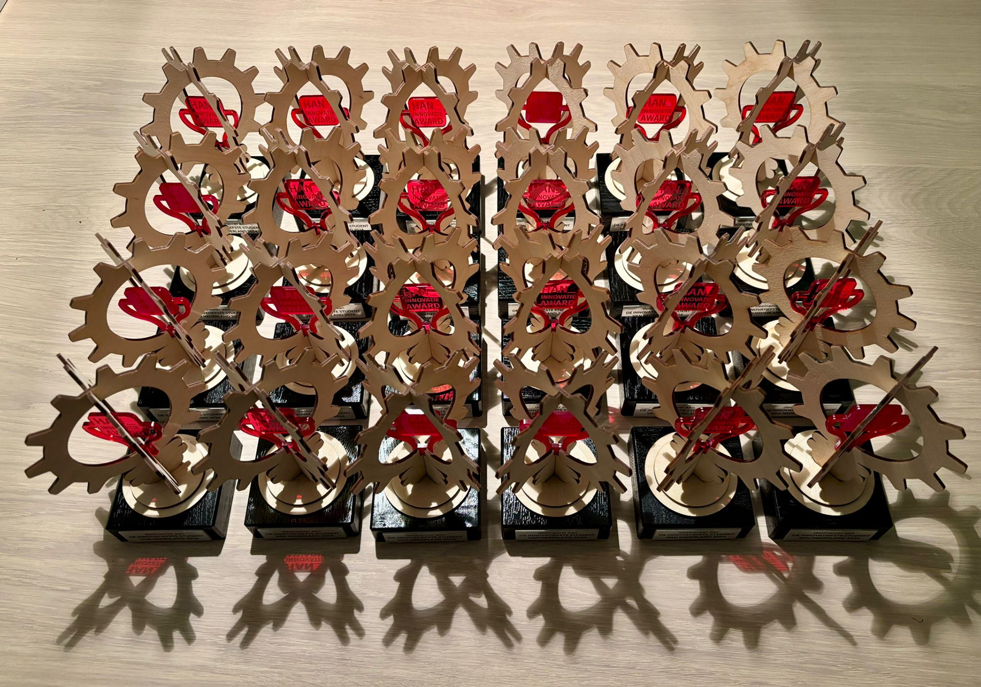 A couple of student and project groups of the HAN joined the 'meest innovatieve student' competition in the Netherlands. As a token of their gratitude for and pride in their students the HAN wanted to gift all these students an award, regardless of their success in the competition.